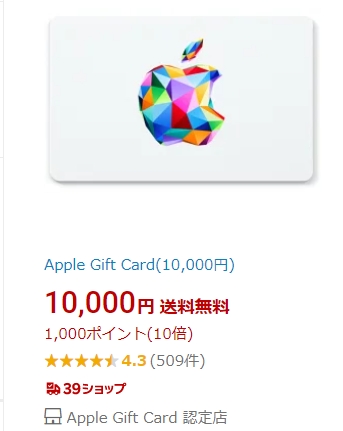 そう、Appleストアのギフトカードを楽天で購入して