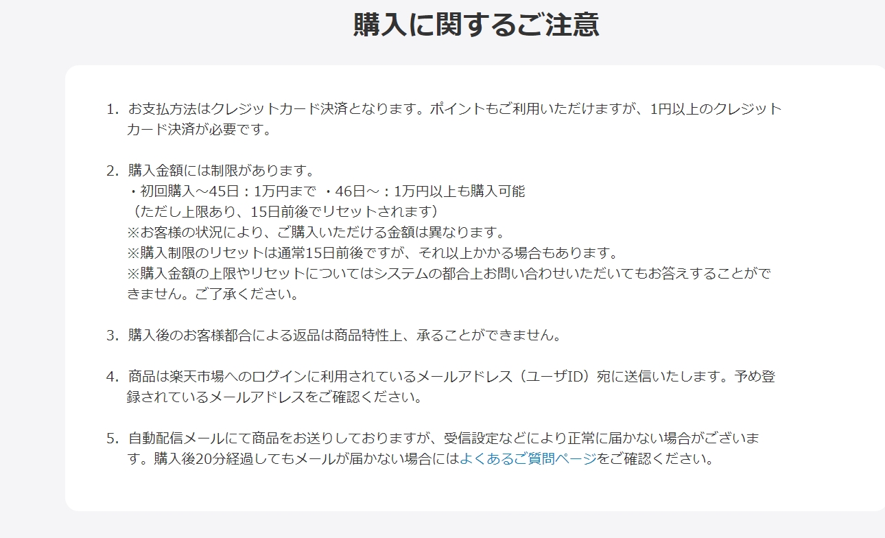 購入金額に制限があるのでご注意を!