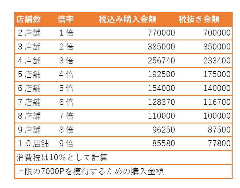 獲得ポイント上限早見表